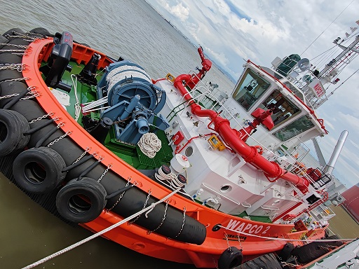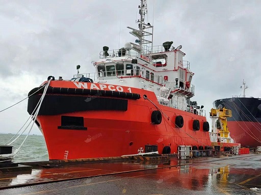 該三艘工作船是WAPCO公司專(zhuān)門(mén)為尼貝項(xiàng)目海上作業(yè)和海上設(shè)施運(yùn)行維護(hù)而量身打造,全部入級(jí)法國(guó)船級(jí)社(BV),這三艘船除具備為油輪頂推拖拽功能外,還兼?zhèn)湎?、起拋錨、海上溢油圍控回收、海上應(yīng)急救援、物資供應(yīng)、海洋工程支持作業(yè)等綜合性船舶服務(wù)能力,是保障尼貝管道項(xiàng)目海上作業(yè)和海上設(shè)施安全平穩(wěn)運(yùn)行、實(shí)現(xiàn)原油裝船作業(yè)的關(guān)鍵設(shè)備。