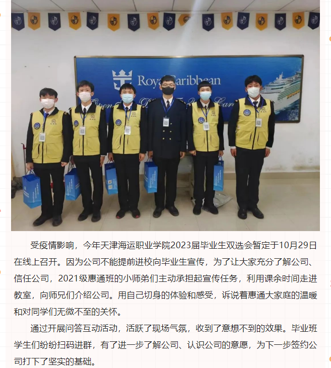 當(dāng)好公司宣傳員——天津海運(yùn)職業(yè)學(xué)院2021級(jí)惠通班生活側(cè)記 時(shí)間:2022-10-25 點(diǎn)擊:2251次 上一篇:【黨建園地】賀報(bào)! 下一篇:天津海運(yùn)職業(yè)學(xué)院2021級(jí)惠通班學(xué)習(xí)側(cè)記